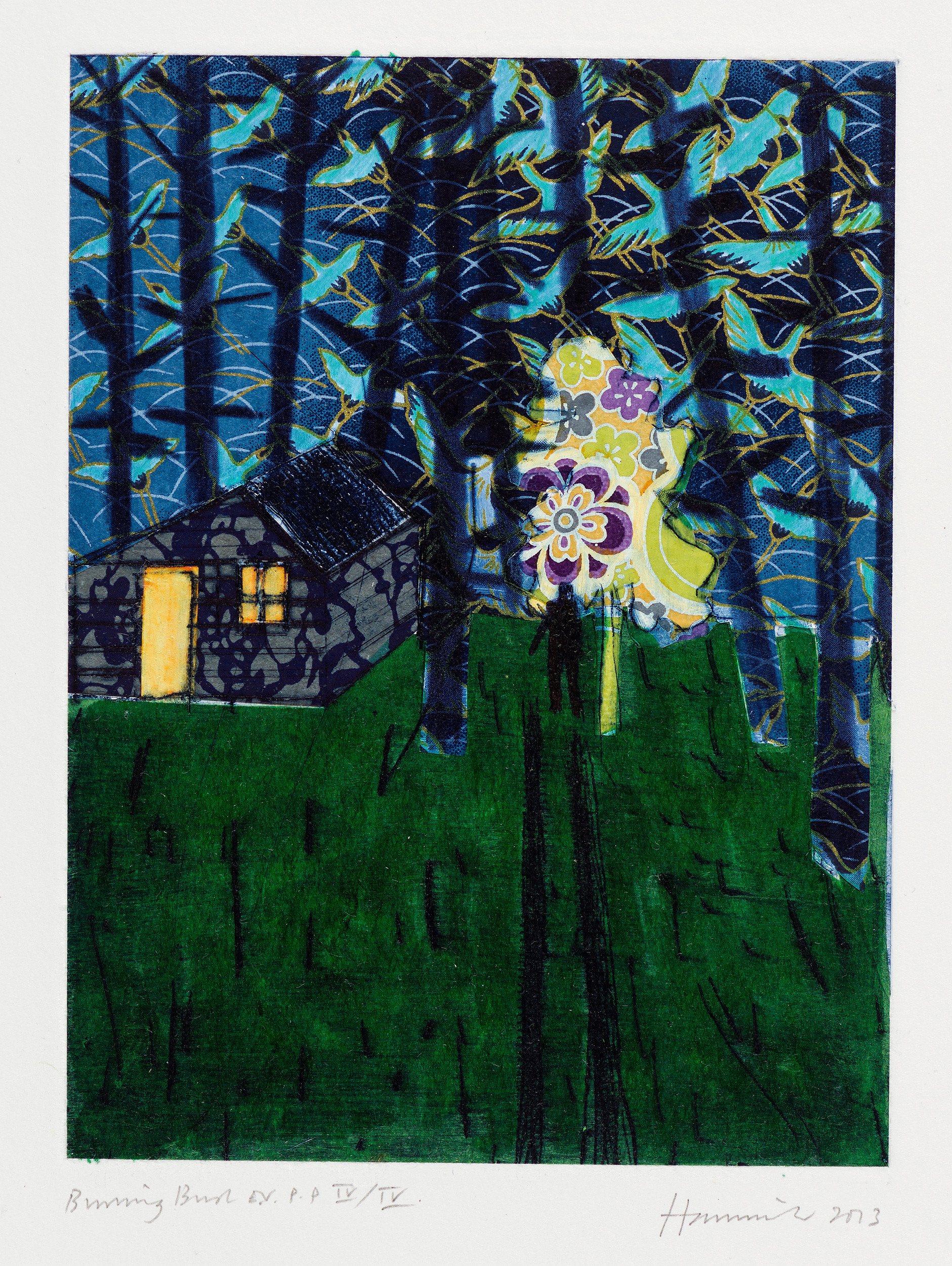 This is a chine colle drypoint of a tree in blossom next to my shack on the edge of a tiny wood -TH