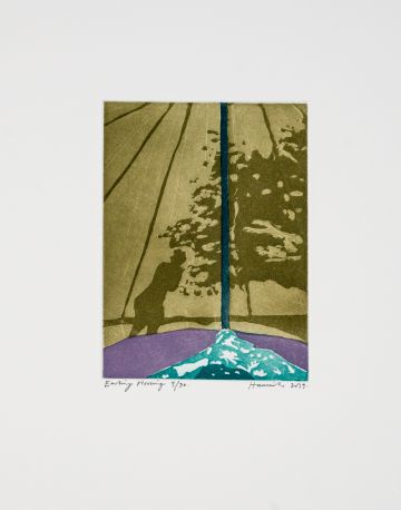 A tent transparent enough, two frames, a fruit tree and a naked lover in the early morning light is a transient moment. Soon the sun will awake the world and the tree will be alone. – TH