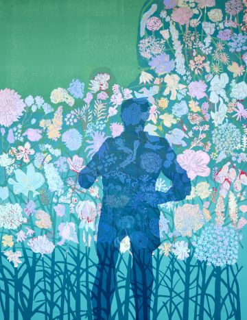 As an artist I feel in part I want to somehow obliquely tell the story of one’s time on Earth. As the title of this complex woodcut suggests, with the backdrop of our political system running away from decisions that take responsibility now to avert the worst outcomes of climate catastrophe, I have tried to make an image that celebrates the reseeding of Earth at an individual level.