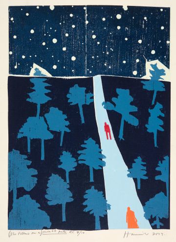 A woodcut made in 2018/19 was part of over 40 images made to illustrate Adam Nicolson’s The Making of Poetry. Adam’s book, published by Farrar Straus and Giroux in The States celebrated the formative relationship between William Wordsworth and Samual Taylor Coleridge while they stayed in The Quantock in Somerset in the late 18th Century. It was the time when this coming together of these two great poets conjured up the beginning of a new poetry that not only addressed the injustices of the time on the poor in Great Britain and the schism of their miserable existence between themselves and the rich of the time, but also kick started the romantic movement with a new understanding that the cerebral relationship between man and his/her natural surroundings was key to a new more holistic approach to how human kind is part and parcel of the environment - TH